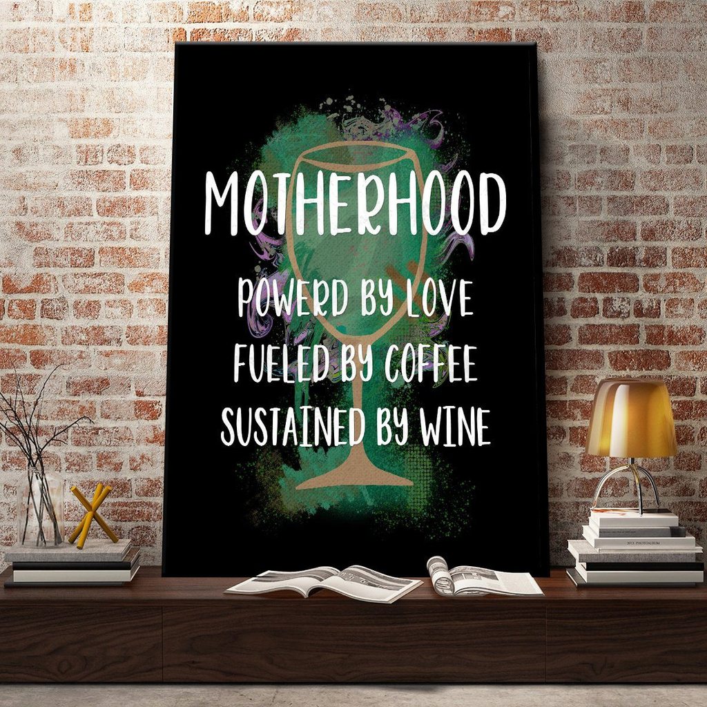 Canvas Wall Art Home Decor Motherhood Powerd By Love Fueled By Coffee Sustained By Wine CA208