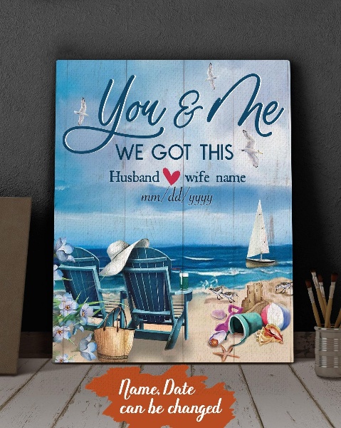 Personalized Canvas Wall Art Home Decor Anniversary Gift – On The Beach You And Me We Got This CA263