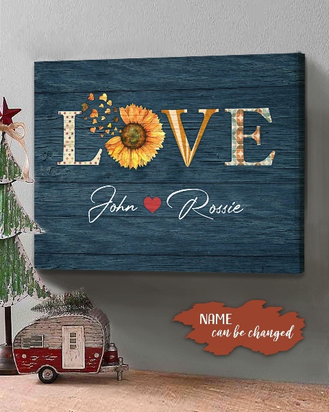 Personalized Canvas Wall Art Home Decor Wedding Anniversary Gift – Love Sunflower Canvas CA254