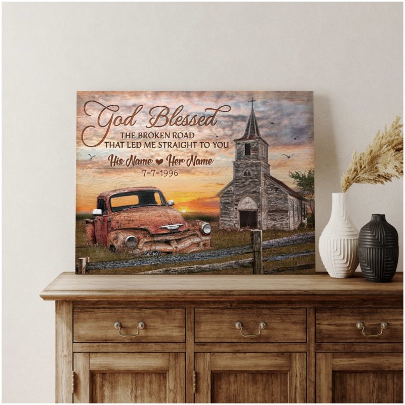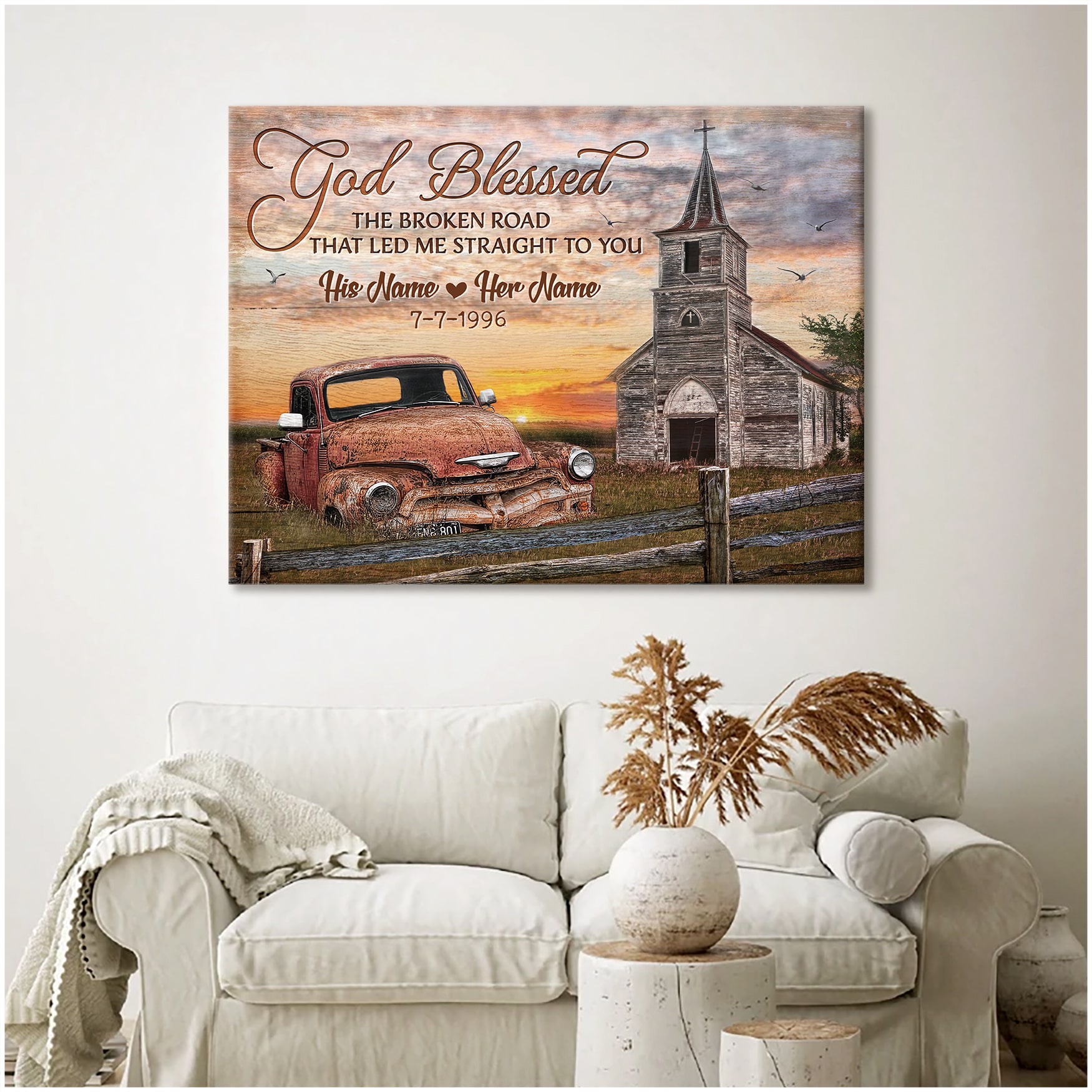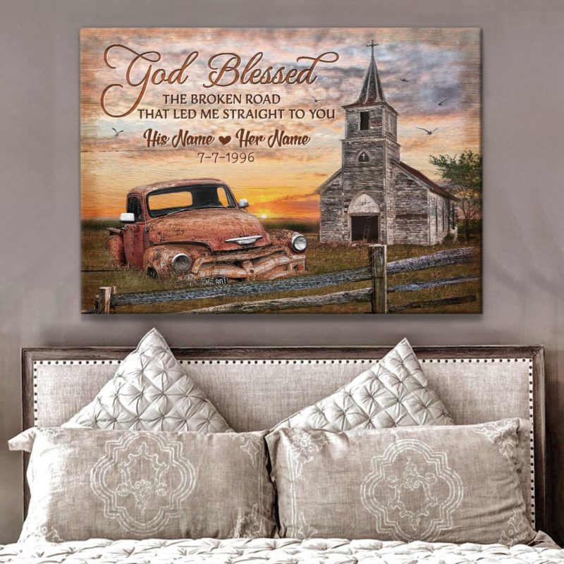 Personalized Canvas Wall Art Home Decor Wedding Anniversary Gifts God Blessed The Broken Road CA213